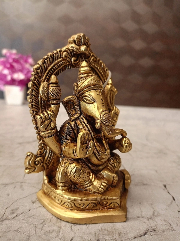 Purification of Environment: Brass is known for its purifying properties. A brass Ganesha idol, especially with an arch, is believed to purify the surrounding atmosphere, creating a serene and spiritually charged ambiance.