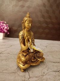 Elegant and Serene Decor: The intricate brass craftsmanship and the serene posture make this idol a beautiful and meaningful decorative piece. Its warm, golden luster adds a touch of sophistication and spiritual calm to any room.