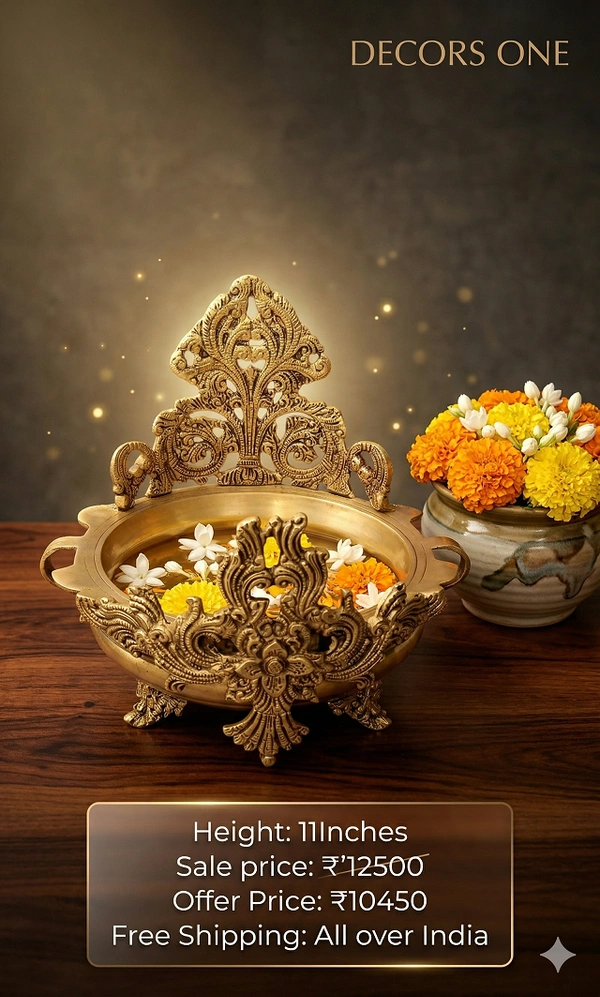 Elevated Aesthetic: This Uruli is designed to be a focal point in luxurious or traditionally themed interiors. Its rich brass material and elaborate carvings make it an instant eye-catcher.