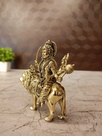 Decorative Item/Home Decor: Beyond its profound religious function, the idol's dynamic posture, intricate detailing, and the rich luster of brass make it a visually striking and culturally significant decorative piece. It adds a powerful, majestic, and traditional aura to living spaces, meditation areas, or any decor setting. It often serves as a focal point, commanding presence and enhancing the spiritual and aesthetic ambiance.