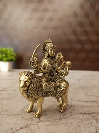 Pooja/Worship: This is the primary and most significant use. Goddess Durga (Durgai Amman in Tamil) is a fierce and powerful Hindu deity, the supreme Mother Goddess, protector of the righteous, and destroyer of evil. This brass idol would be prominently placed in home altars (pooja rooms), temples, or sacred spaces for daily worship, offerings (such as flowers, kumkum, incense, lamps), and performing various rituals (poojas). Worshipping Durga is believed to grant strength, courage, protection from negative forces, victory over challenges, and overall well-being. She is especially revered during festivals like Navaratri and Durga Puja.