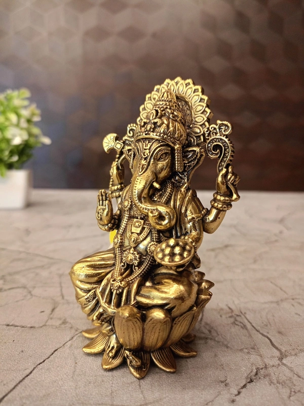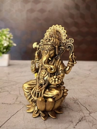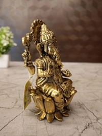 A brass Ganesha idol, specifically one seated on a lotus base (as depicted in the image), is a highly revered and widely used item in Hinduism. Its primary uses revolve around worship, seeking blessings for new beginnings, obstacle removal, and attracting prosperity and good fortune.