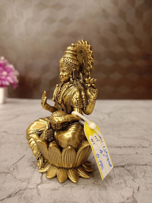 Brass Fine Art Lakshmi Idol Sitting On Lotus Base
