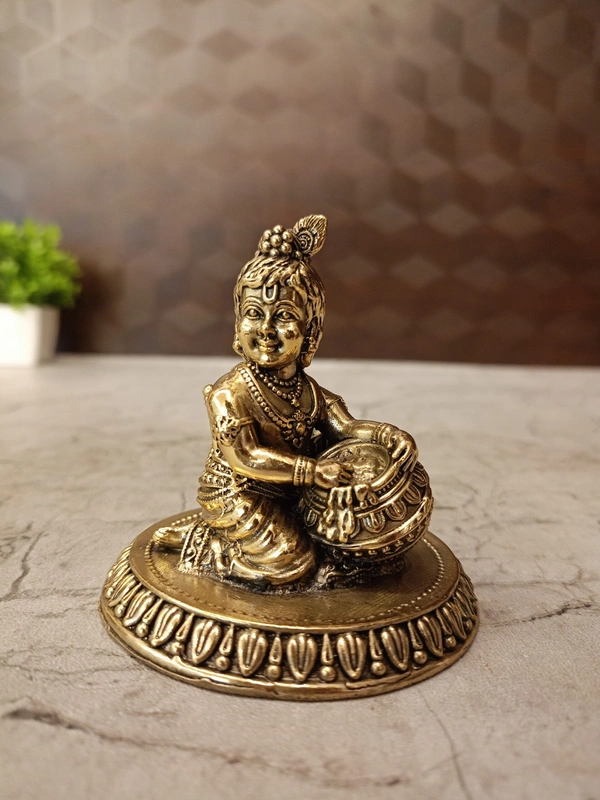 Pooja/Worship: This is the primary usage. Vennai Krishna (Lord Krishna as a child, often depicted with butter) is a beloved deity in Hinduism. This idol would be used in home altars or temples for daily prayers, offerings, and rituals.