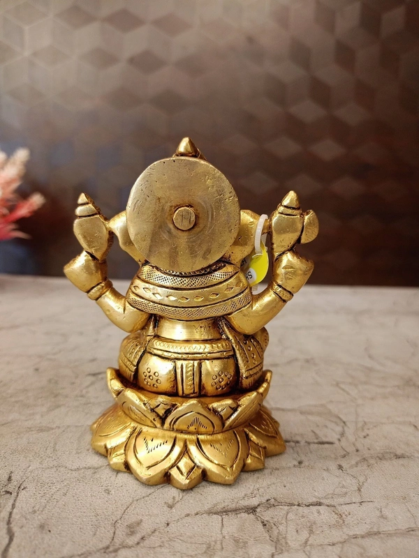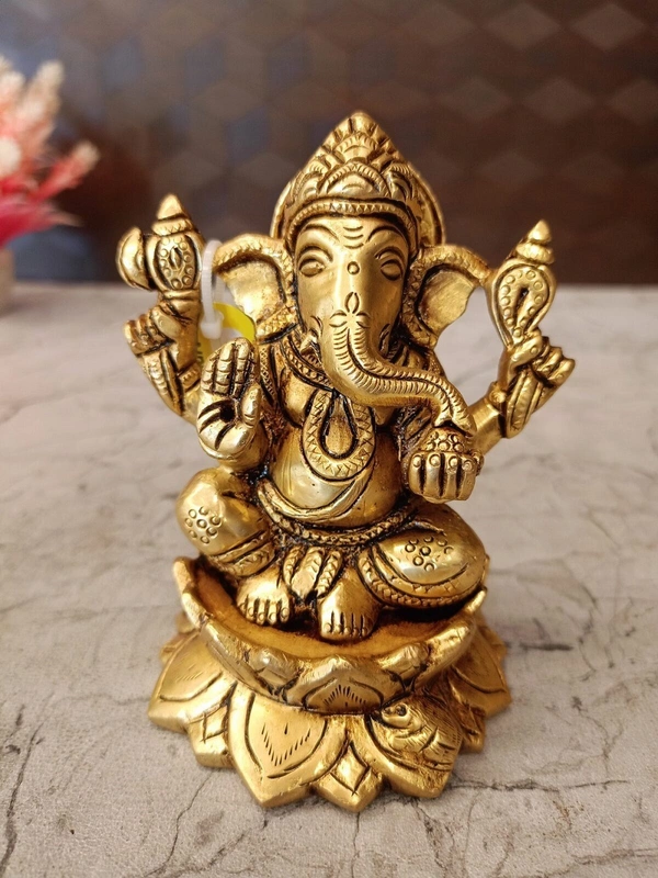 A Ganesha idol sitting on a lotus base is a highly significant and auspicious depiction in Hinduism. The combination of Lord Ganesha, the remover of obstacles and bestower of wisdom, with the lotus flower, a profound symbol in Indian spirituality, creates a powerful synergy of benefits and meanings.
