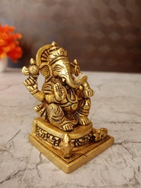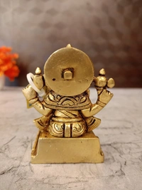 Our skilled artisans have poured their devotion into every detail, from the gentle contours of Ganesha's form to the intricate engravings on his adornments. The statue's warm, radiant lustre and antique finish lend it a timeless appeal, making it a piece that is both spiritually significant and aesthetically magnificent.