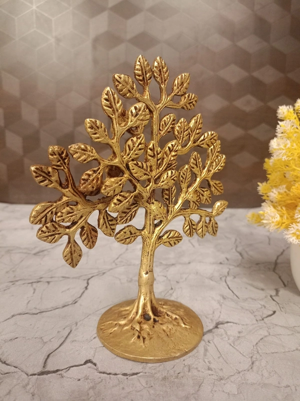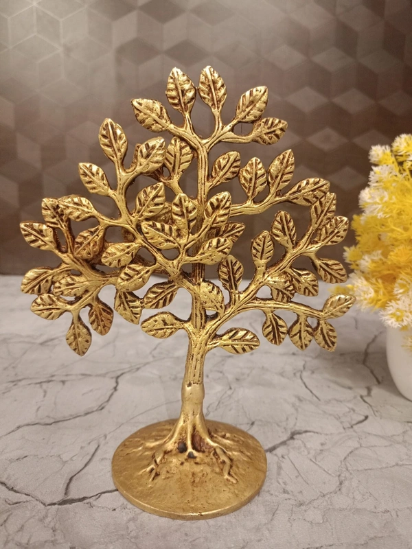 Home Decor and Aesthetic Appeal: * Elegant Decoration: The brass Kalpavriksha tree is a beautiful and aesthetically pleasing decor item that adds a touch of traditional elegance and spiritual charm to any space. * Tabletop/Shelf Display: It's commonly placed on living room tables, shelves, mantels, study desks, or office tables. Its intricate design and golden hue make it a focal point.