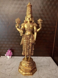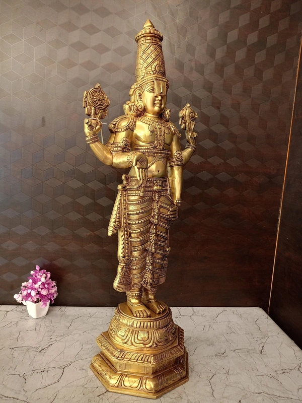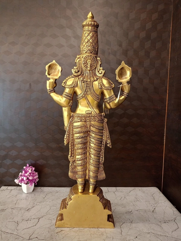 Brass Lord Balaji Idol is also Known Lord Venkateswara, Perumal.Balaji is Considered as Avatar of Lord Vishnu.Balaji is devoteed by Hinduism order destroy the sins of People. Brass Balaji is fine handcrafted brass with minute carving works and golden antique finish which makes the idol unique and divine. Balaji is considered as Lord of Wealth and Lord of Good fortune.