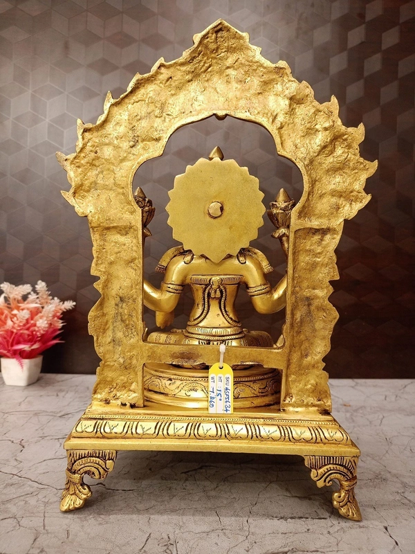 Complete Divine Presence: The arch (Prabhavali) behind the idol symbolizes the divine aura, cosmic energy, and often depicts celestial beings or auspicious motifs, completing the iconography of the deity. It frames Lakshmi, enhancing her divine presence and radiating a sense of wholeness.
