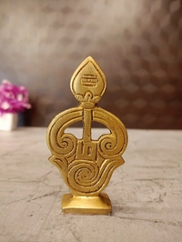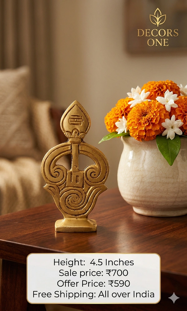 A brass "Om Vel" is a distinct and potent symbol in Hinduism, specifically revered by devotees of Lord Murugan.