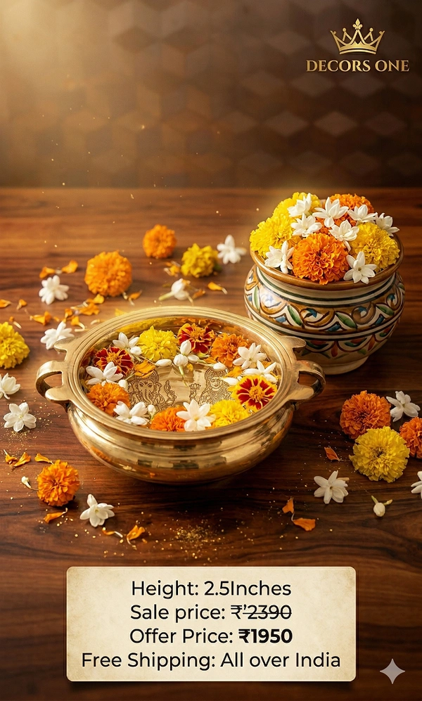 Festive Ambiance: Even a small Uruli can contribute significantly to festive decor during occasions like Diwali, Onam, Pongal, or daily pooja, by floating a single diya or flower.