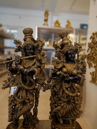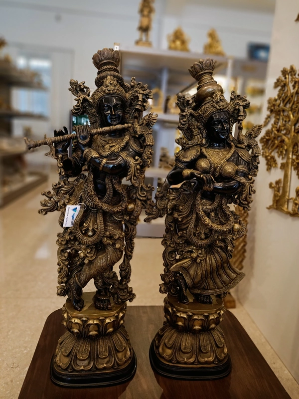 A brass Radha Krishna idol is a deeply cherished and highly significant spiritual item in Hinduism, particularly for followers of Vaishnavism and practitioners of Bhakti Yoga (the path of devotion). The combined form of Radha and Krishna symbolizes the pinnacle of divine love, pure devotion, and the ultimate union of the individual soul (Jivatma) with the Supreme Being (Paramatma).