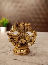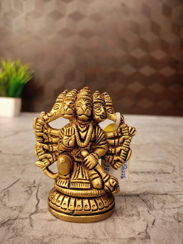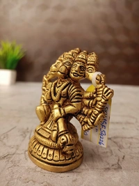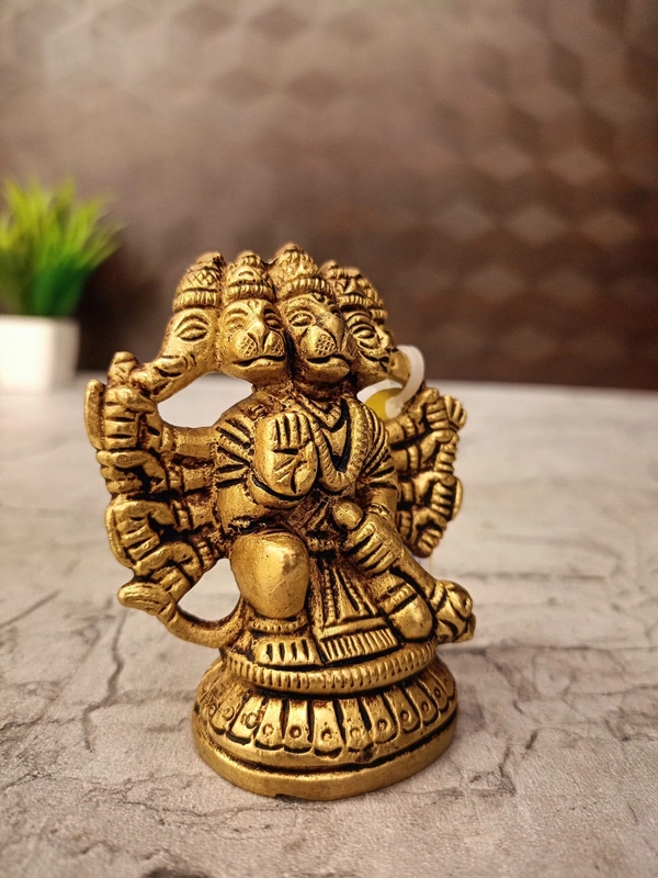 A brass Panchamukha Hanuman idol, like the one shown, is a highly significant and powerful deity in Hinduism. "Panchamukha" means "five-faced," and each face of this form of Hanuman holds specific symbolic and spiritual meaning.