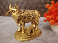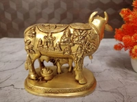 A brass cow and calf idol, often representing Kamadhenu, the divine wish-fulfilling cow in Hinduism, is highly revered and believed to bring numerous benefits to a home or workplace. These benefits span across spiritual, material, and emotional aspects, deeply rooted in Hindu mythology and Vastu Shastra.