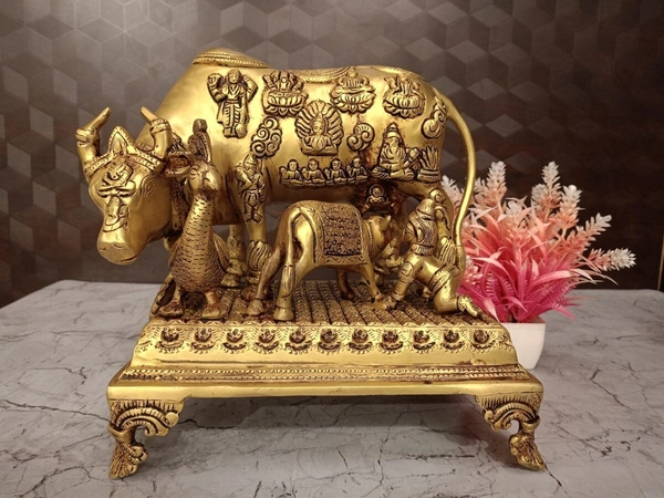Purity and Positivity: The presence of the cow is believed to purify the environment, remove negative energies, and attract positive vibrations, fostering peace and harmony.