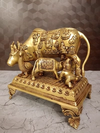 Buy Brass Cow And Calf With All Gods With Peacock And Krishna