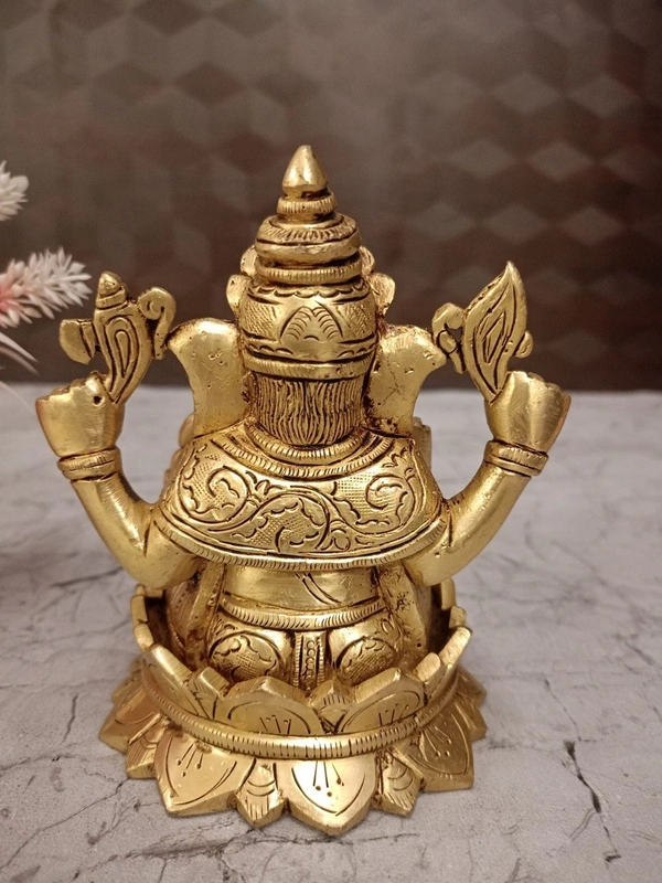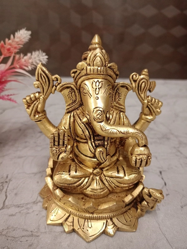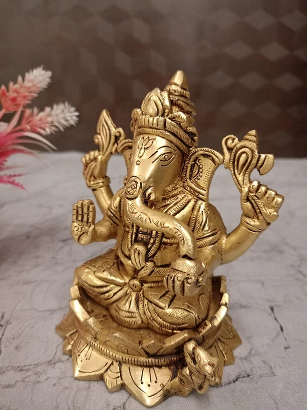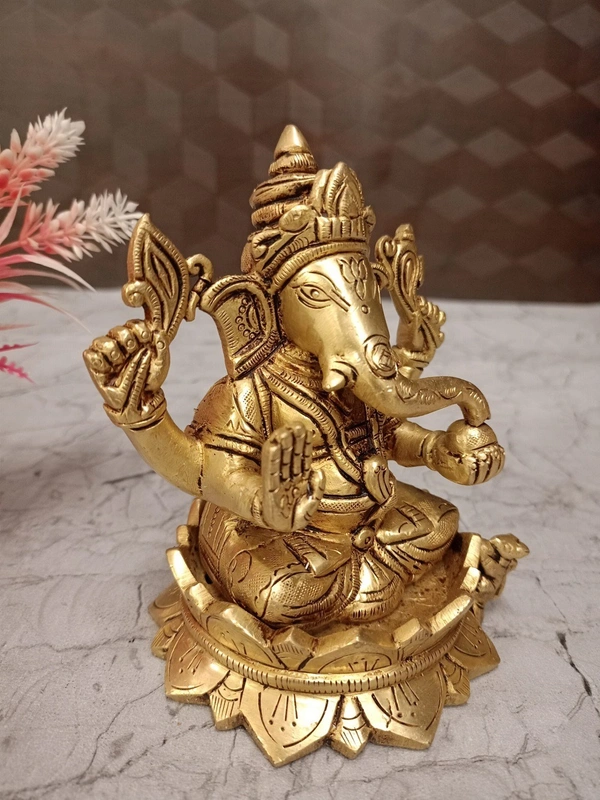 A brass Ganesha idol on a lotus base is a popular and meaningful item in Hindu iconography and home decor