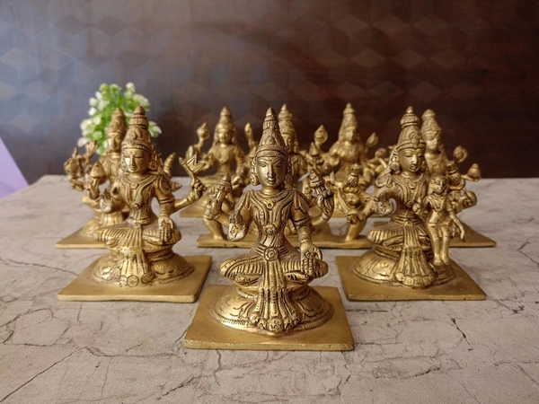 Worshipping the Brass Ashtalakshi Idols is believed to invoke the blessings of the eight forms of Goddess Lakshmi, who bestows prosperity, health, wisdom, and overall well-being. Enhance your spiritual practice and invite divine energy into your home with this timeless piece from our exclusive collection of over 1000 unique brass idols and decor items.