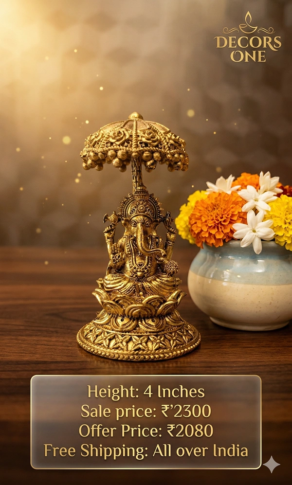 A brass Ganesha idol with an umbrella is a wonderful addition to any home, as it combines the benefits of Ganesha's presence with the added symbolism of the Chatra.