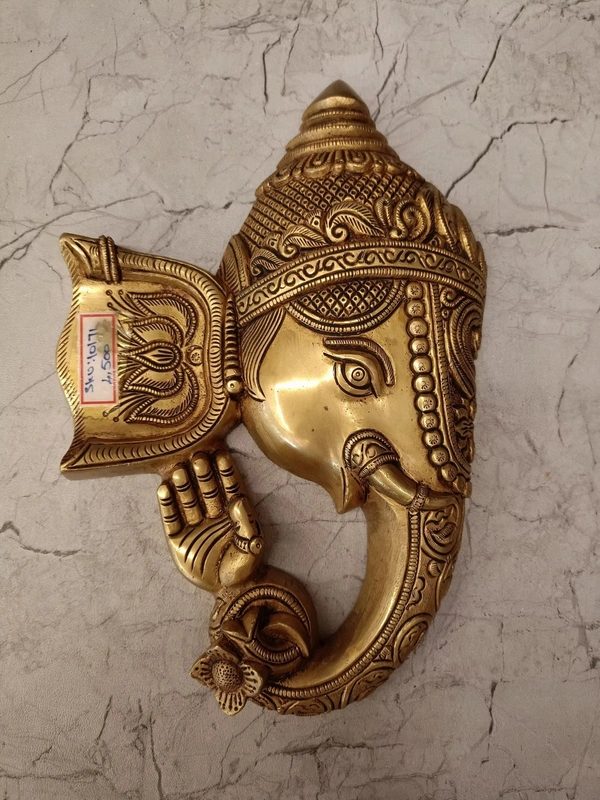The Brass Ganesha Face wall mount is a versatile and highly detailed piece of Indian handicraft often used for both spiritual protection and aesthetic enhancement.