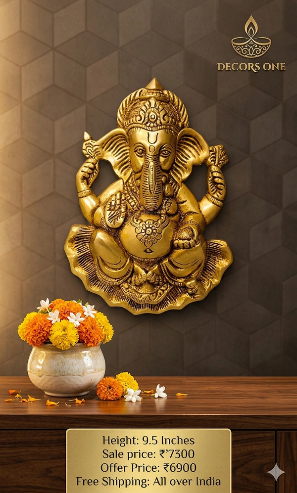 Crafted with exquisite detail, the Brass Ganesha Wall Mount 9.5" by VgoCart - Brass Exclusive Store showcases a beautifully handcrafted antique design, perfect for adding a touch of traditional elegance to any home décor. This unique brass idol represents Lord Ganesha, symbolizing wisdom and prosperity, making it a meaningful centerpiece for your living space. As a proudly handcrafted piece, it reflects the rich heritage and artistry that VgoCart offers through its extensive collection of over 1000 unique brass idols and décor items.