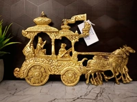 Elevate your space with the timeless elegance of the Brass Karnan In Chariot 7'', a stunning example of handicraft antique home decor. This exquisite brass idol embodies the rich traditions and meticulous craftsmanship India is celebrated for, making it a statement piece that adds both beauty and cultural depth to your home.