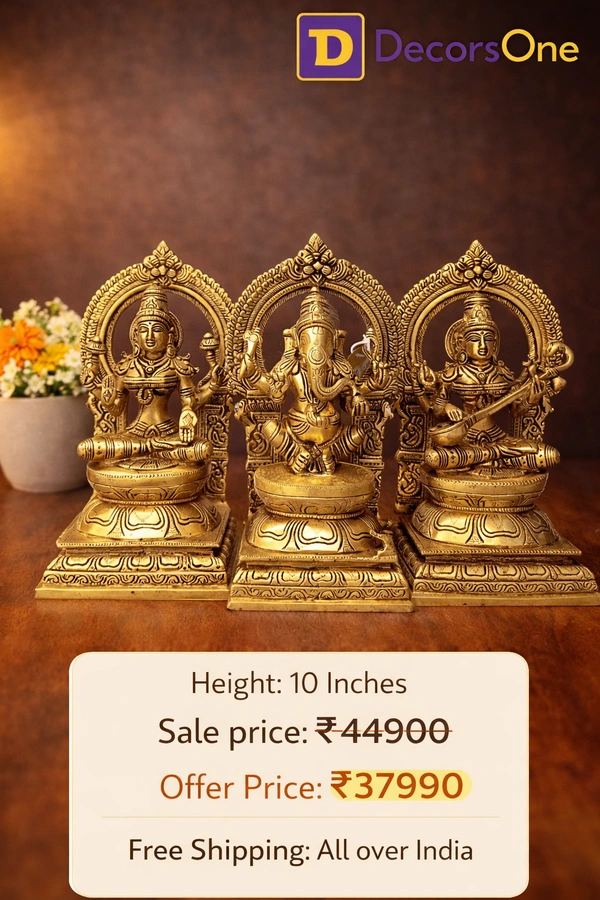 Brass Lakshmi Ganesha Saraswathi Set Depiction: