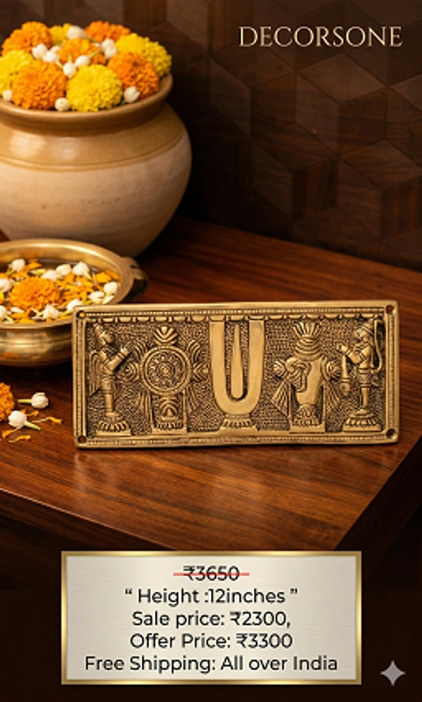 Worshipping with the Brass Perumal Namman Plate Wall Mount brings not only aesthetic appeal but also spiritual tranquility. It is believed to attract positive energy, bringing prosperity and peace into your home. Embrace the centuries-old tradition of brass décor with VgoCart's unparalleled selection, embodying our commitment to quality and cultural richness.