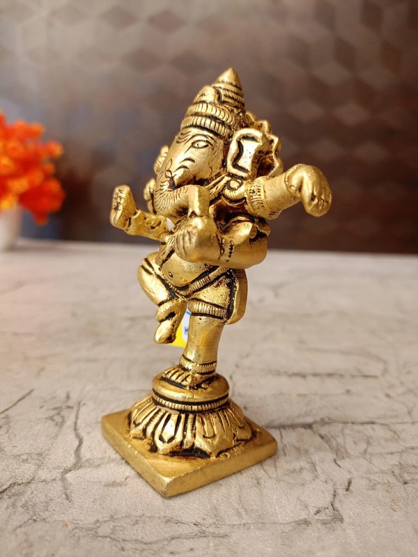 Capture the vibrant, blissful energy of Lord Ganesha with this exquisitely crafted statue of Nritya Ganapati (the Dancing Ganesha). Cast in high-quality solid brass with a stunning antique finish, this idol embodies the joy of creation and the power to effortlessly overcome all obstacles.
