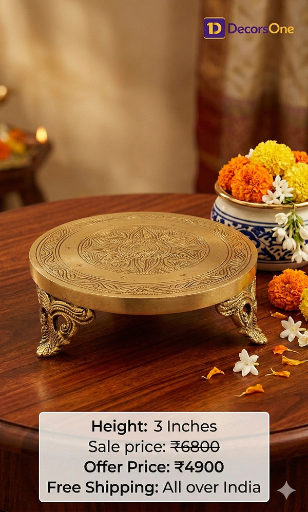 Brass Round Chowki Floral design 3"