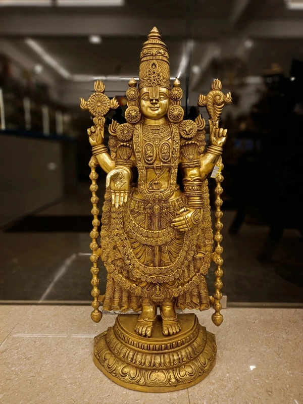Our exquisite 38" 3 Feet Brass Superfine Balaji Idol is a masterpiece of handicraft antique home decor. Expertly crafted from premium brass, this idol radiates a timeless elegance that enhances any living space. At VgoCart, we pride ourselves on offering unique pieces that embody tradition and sophistication, and this Balaji Idol is no exception.